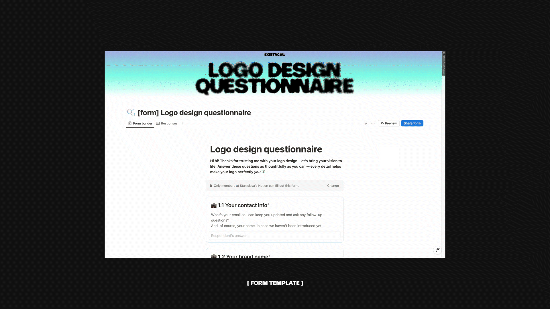 Save time and make your logo design process smoother with this ready-to-go template, available as both a Notion document and a Notion form. Crafted for designers like you to help ask the right questions — the ones that truly matter — ensuring you gather the insights needed to create impactful, meaningful logos that truly work.